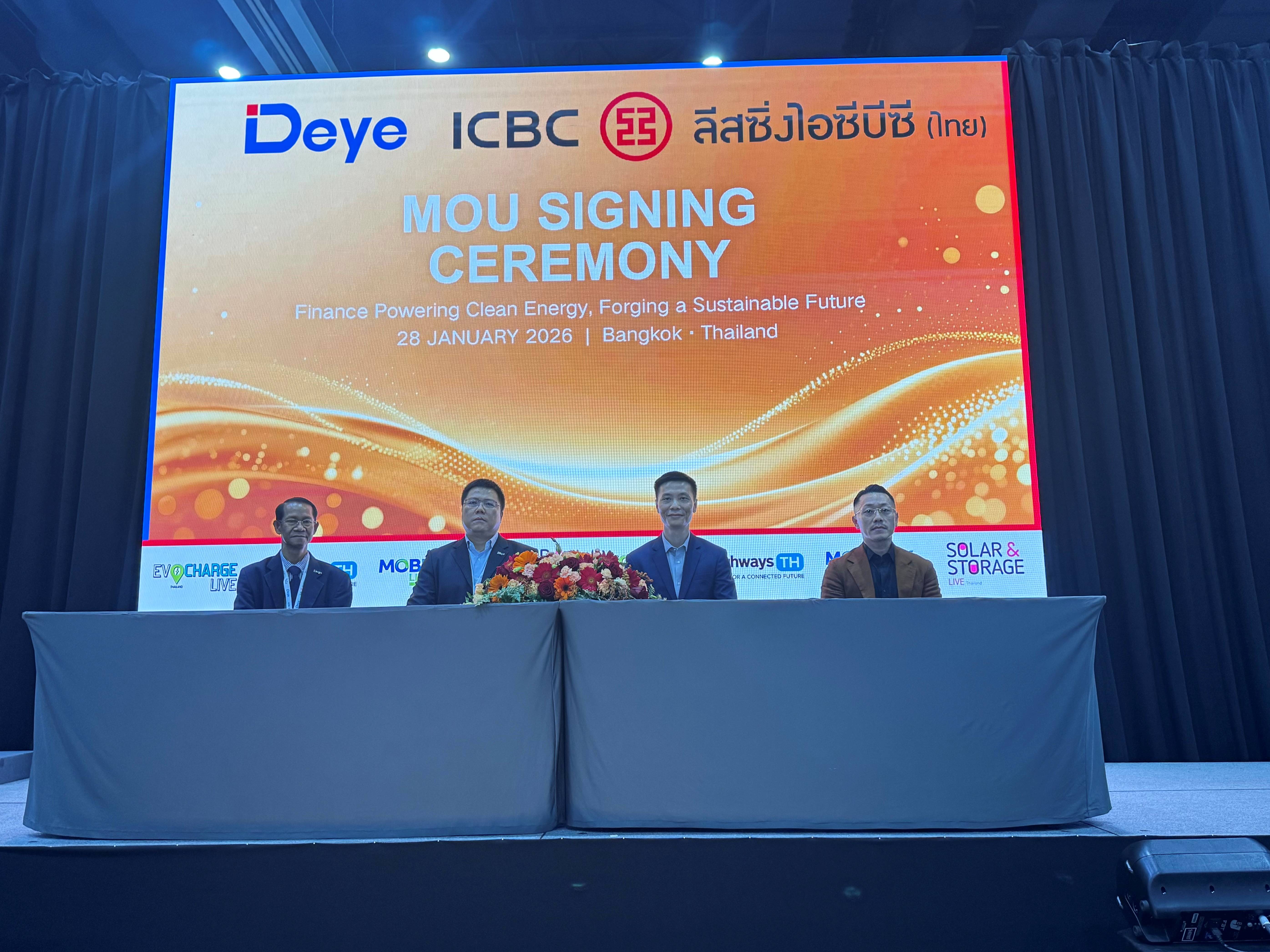 On Wednesday, 28 January, 2026, ICBC (Thai) Leasing Company Limited officially signed a Memorandum of Understanding (MOU) with Deye Thailand during Solar & Storage Live Thailand 2026, held at the Bangkok International Trade & Exhibition Centre (BITEC), Bangkok.