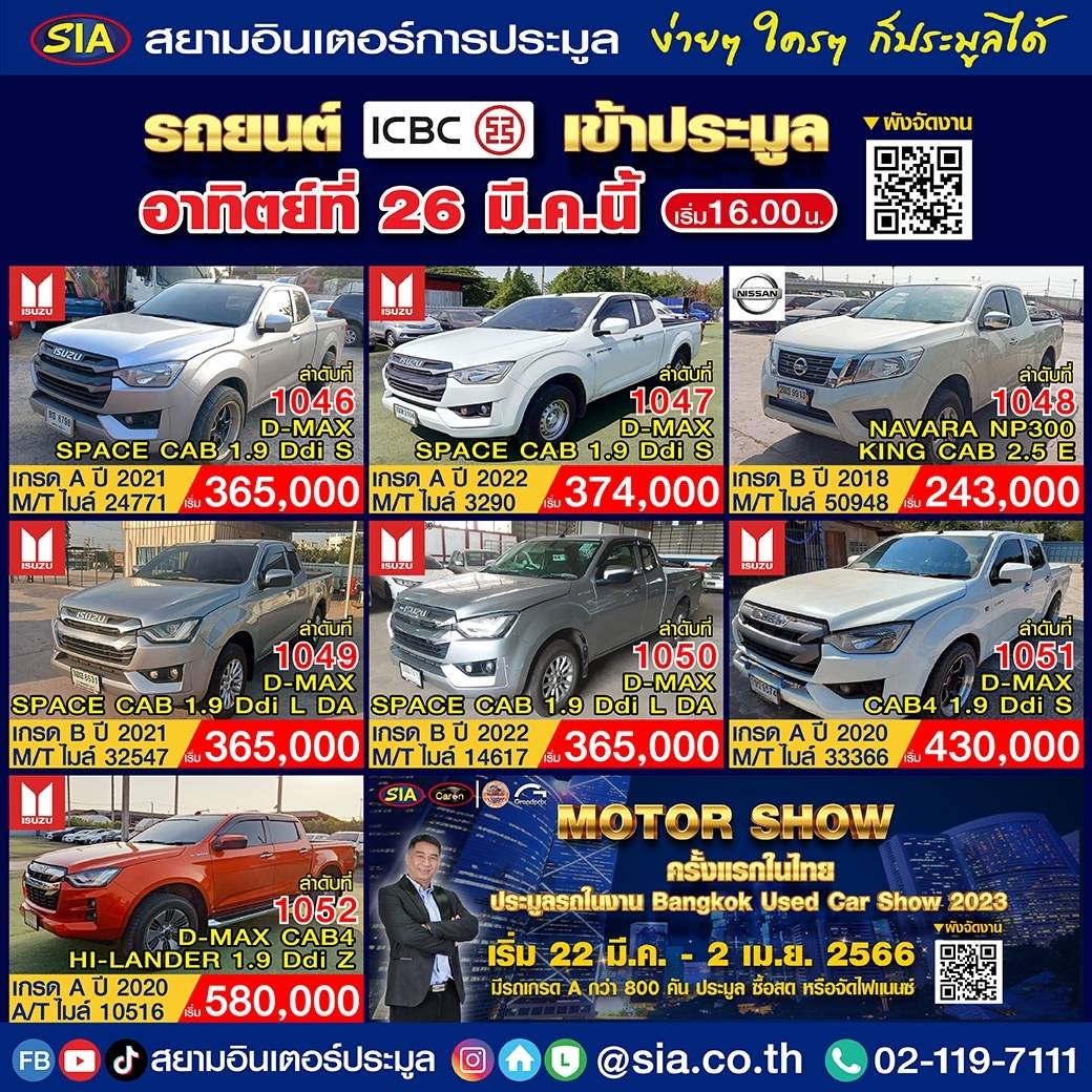 บริษัทฯ ได้คัดสรรรถสวย สภาพดี รถปีใหม่ (ไม่เกิน 5 ปี ตั้งปี 2018-2022) เลขไมล์ไม่เกิน 60,000 กิโลเมตร จำนวน 83 คัน ออกประมูลขายในงาน “ Bangkok Used Car Show 2023” ซึ่งบริษัท สยามอินเตอร์การประมูล จำกัด ได้จัดภายในงาน Motor Show โดยออกประมูลขายในวันอาทิตย์ที่ 26 มีนาคม 2566 ตั้งแต่เวลา 16.00 น. บริเวณ พื้นที่ U14 ด้านหลังอาคารชาเลนเจอร์ฮอล์ 1-3 อิมแพค เมืองทองธานี