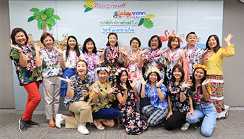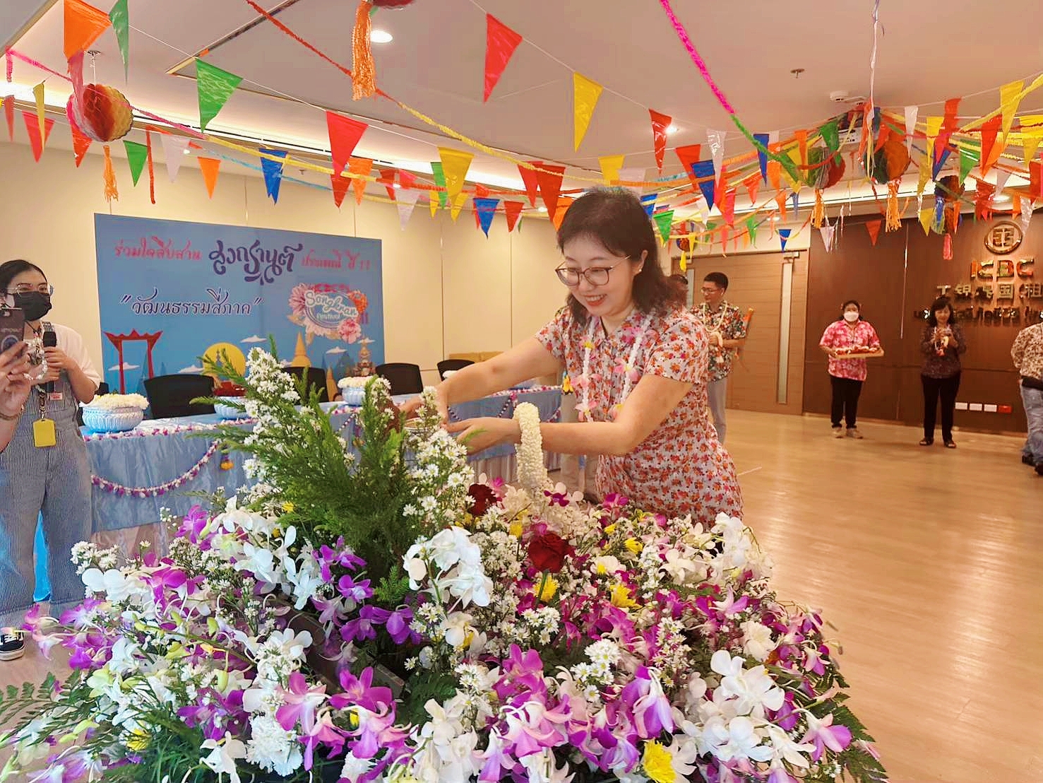 In addition to the customary water-pouring ritual performed at the revered Phra Phuttha Sothon statue for blessings, the festival also incorporates a water-pouring ceremony where employees pay homage to the esteemed executives of the company. To foster a lively and engaging atmosphere, the event features an interactive game called "Songkran Maha Sanook." This activity not only cultivates a sense of camaraderie among the staff but also serves as a collective merit-making endeavor.