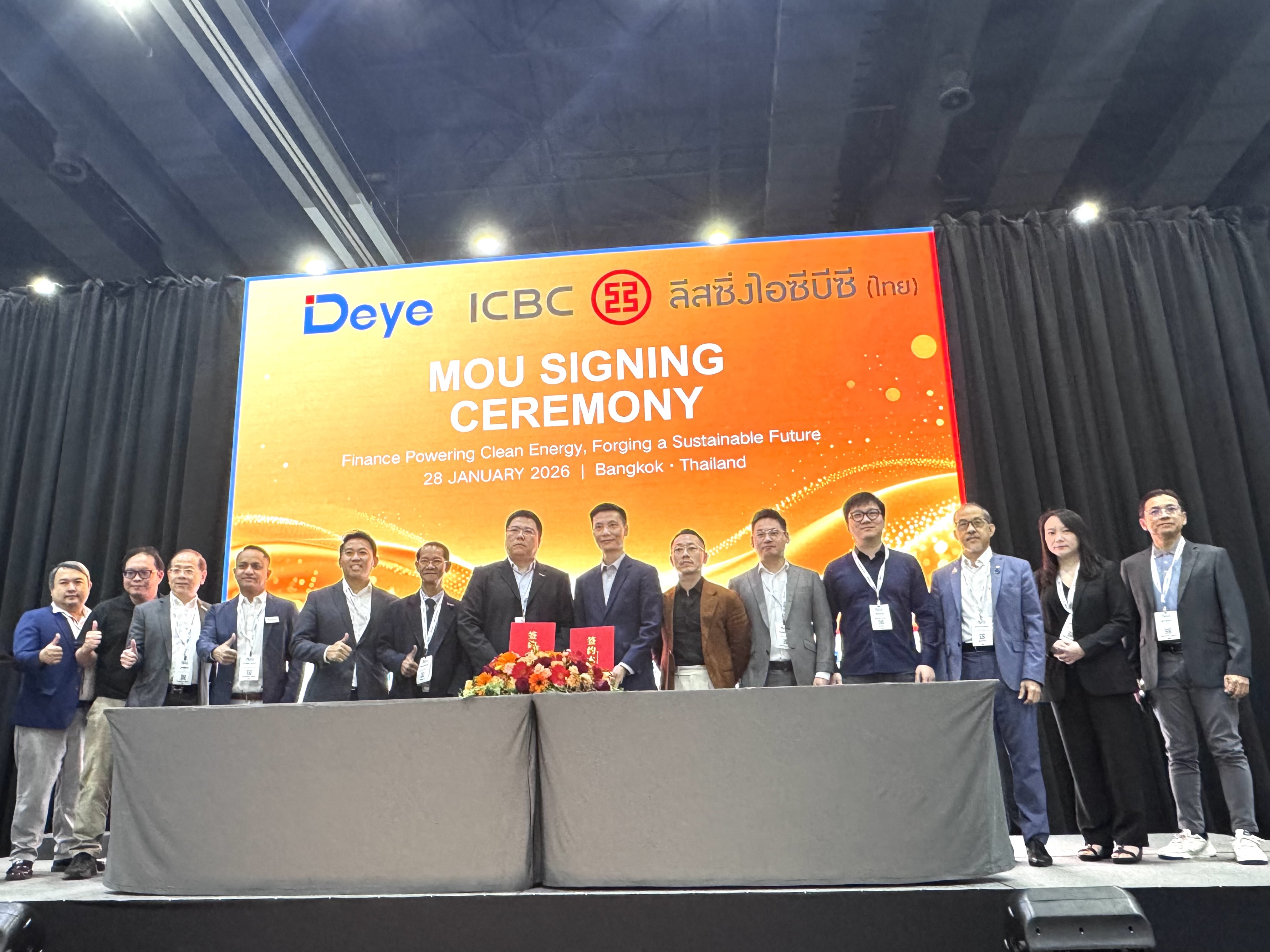 On Wednesday, 28 January, 2026, ICBC (Thai) Leasing Company Limited officially signed a Memorandum of Understanding (MOU) with Deye Thailand during Solar & Storage Live Thailand 2026, held at the Bangkok International Trade & Exhibition Centre (BITEC), Bangkok.