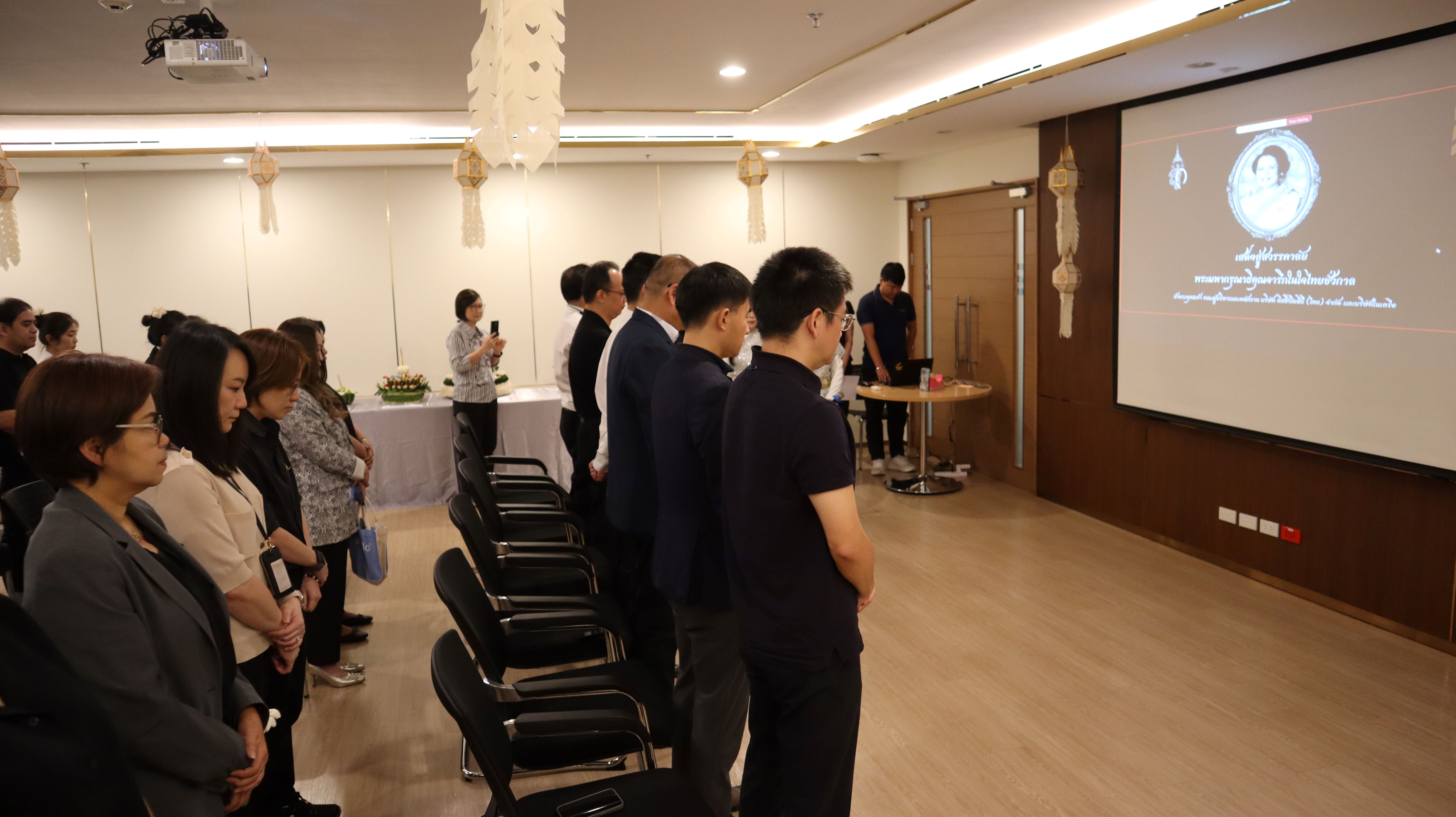 บริษัท ลีสซิ่งไอซีบีซี (ไทย) จำกัด จัดงาน ลอยกระทงประจำปี 2568 เพื่อสืบสานวัฒนธรรมไทย โดยก่อนเริ่มกิจกรรม ผู้บริหารและพนักงานร่วมยืนสงบนิ่ง 1 นาที เพื่อถวายความอาลัยและน้อมรำลึกในพระมหากรุณาธิคุณของสมเด็จพระนางเจ้าสิริกิติ์ พระบรมราชชนนีพันปีหลวง